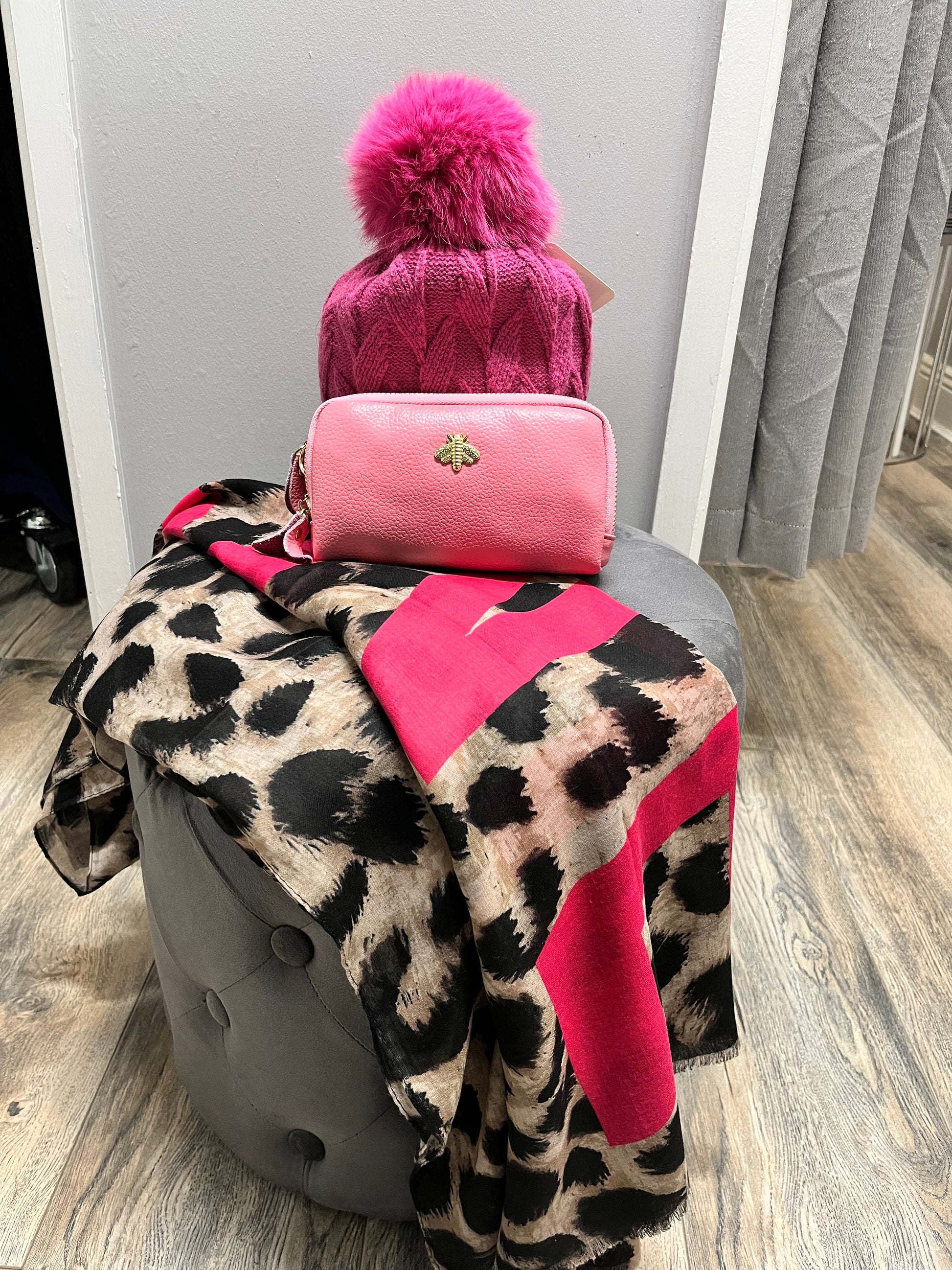 Gift set includes hat, scarf and wallet